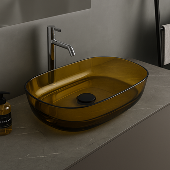 Estilo europeu luxo âmbar marrom resina navio pia moderna oval bancada arte lavatório para a vaidade do banheiro